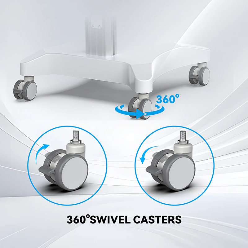 Le chariot pour ordinateur portable Likaymo est équipé de quatre roulettes pivotantes à 360° avec freins à pied. Ce chariot mobile offre une maniabilité et une stabilité optimales, que vous transportiez des outils ou du matériel. Ses roulettes à roulement fluide facilitent la maniabilité en clinique, à l'hôpital ou en institut de beauté. Son cadre robuste assure la stabilité pendant les interventions, tandis que ses roulettes verrouillables assurent un positionnement sûr en cas de besoin.