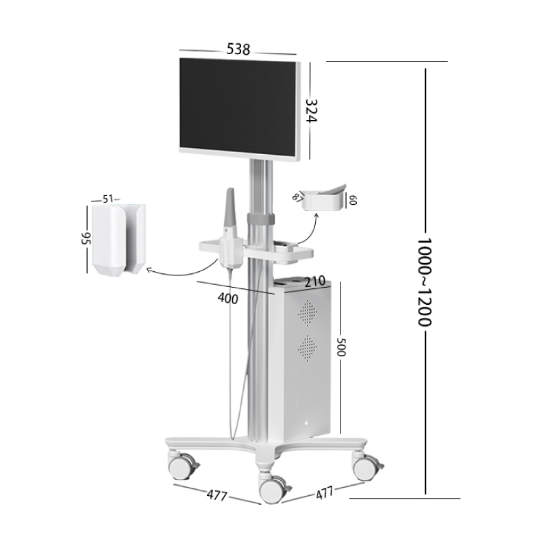 Il s'agit d'un système de scanner intra-oral dentaire mobile et entièrement intégré. Il est équipé d'un écran tactile haute définition monté sur un bras réglable, d'une pièce à main compacte et d'un chariot robuste à roulettes verrouillables pour une maniabilité optimale au sein du cabinet, améliorant ainsi les flux de travail de prise d'empreintes numériques.