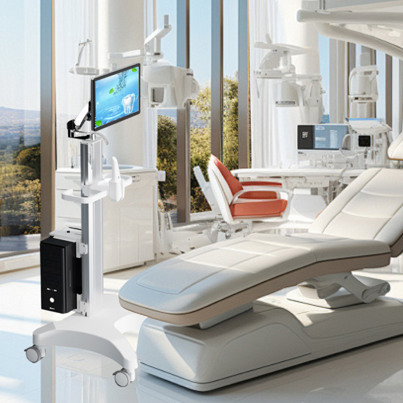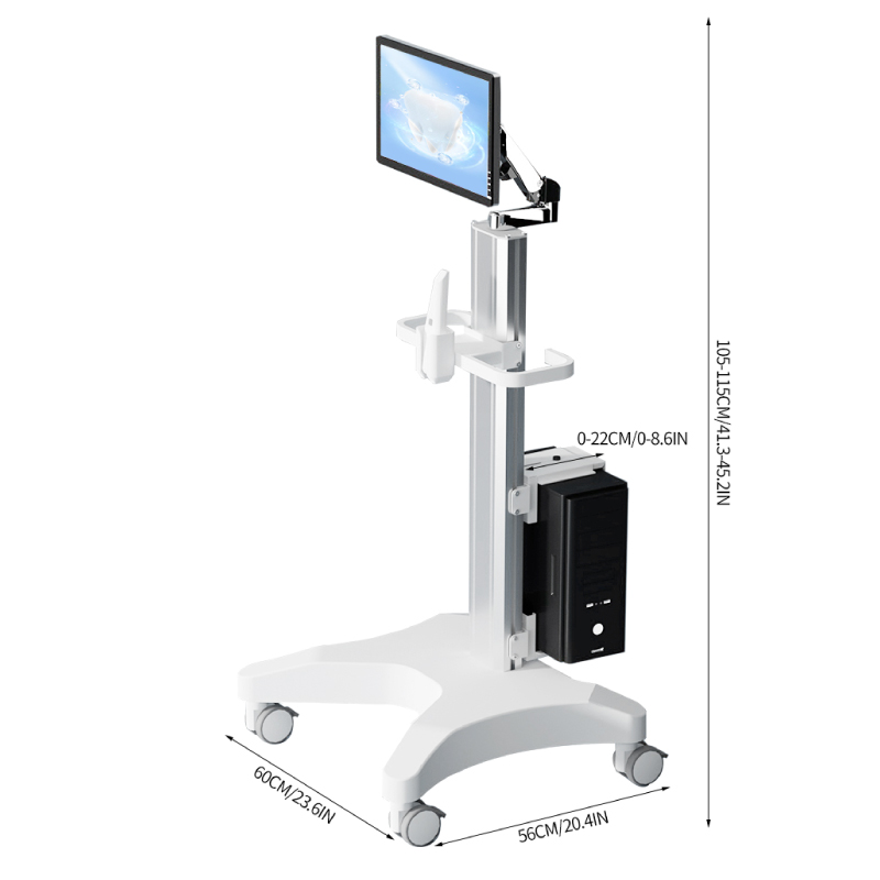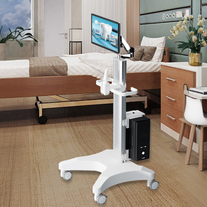 Chariot médical mobile avec support pour scanner oral et bras à vérin à gaz
