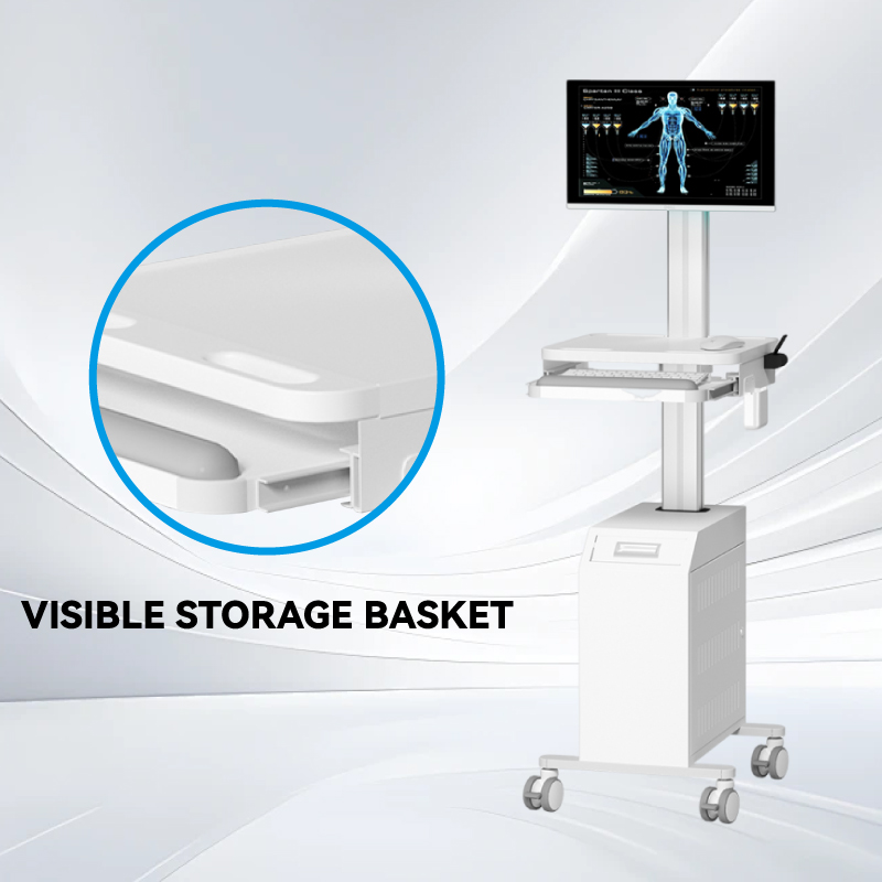 Ce plateau à clavier coulissant s'intègre parfaitement sous le poste de travail, offrant un rangement compact et un accès rapide. Il optimise l'efficacité du flux de travail et l'ergonomie du personnel médical lors des tâches informatiques auprès des patients. Le compartiment de rangement ouvert, orienté vers l'avant, offre un accès immédiat aux articles médicaux fréquemment utilisés, garantissant visibilité et praticité pendant les interventions.