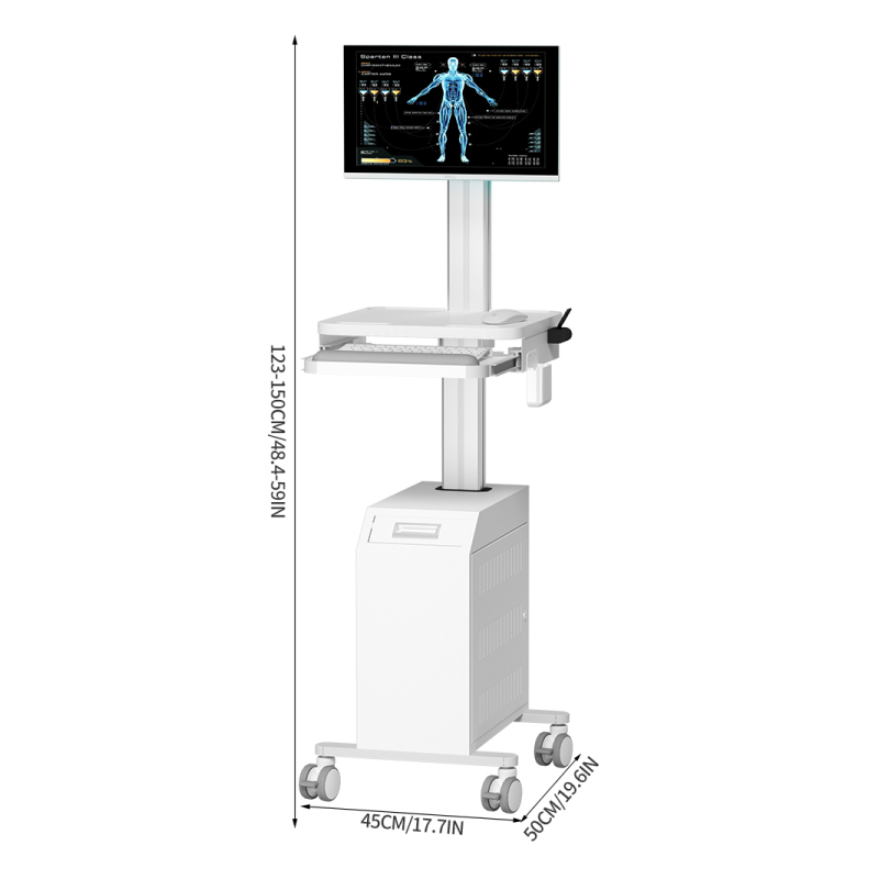 Ce chariot de tournée pneumatique est doté d'une hauteur réglable, d'un écran et d'un ordinateur intégrés, ainsi que d'une armoire de rangement à sa base. Il se déplace avec souplesse dans les services, facilitant ainsi la gestion efficace des tournées électroniques des patients et des soins infirmiers.