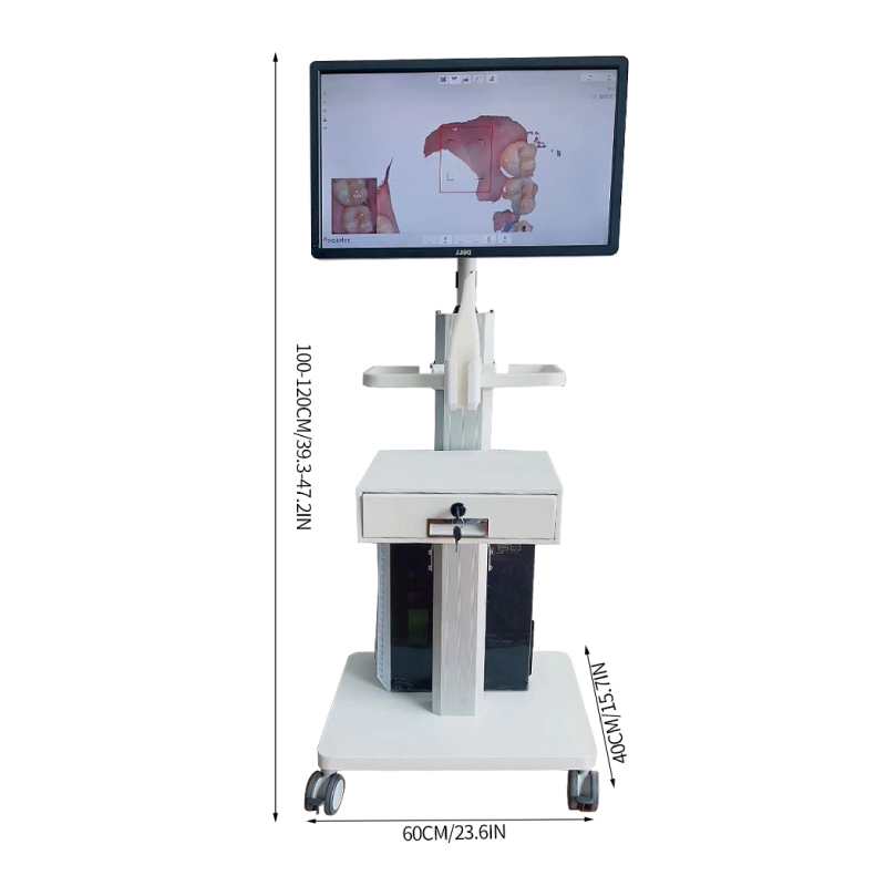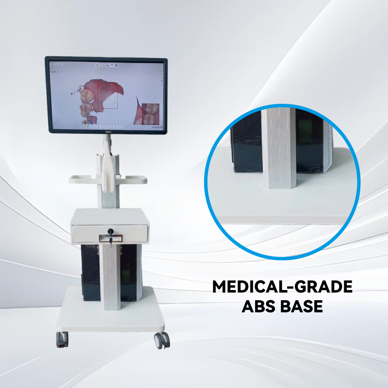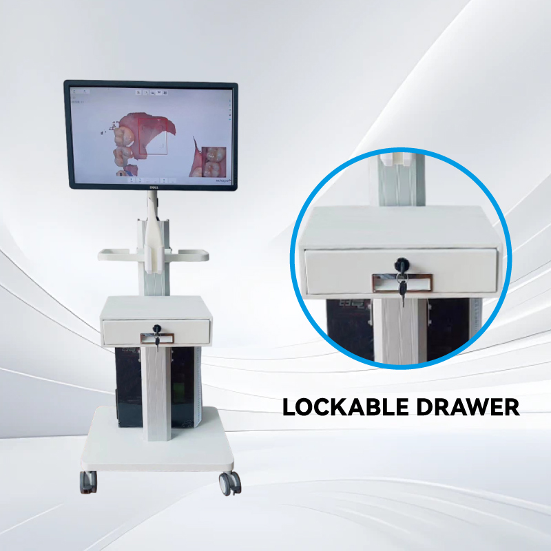 Ce chariot dentaire mobile améliore l'efficacité clinique grâce à sa hauteur réglable, sa construction en ABS de qualité médicale et son système de rangement verrouillable pour accessoires. Le système de gestion des câbles intégré garantit un fonctionnement sans encombrement, tandis que ses roulettes robustes assurent une mobilité optimale. Conçu pour une intégration parfaite avec un scanner intraoral, il optimise l'ergonomie et le respect des normes de stérilisation.